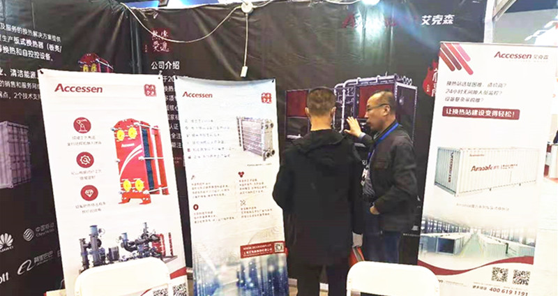 上海艾克森作為隨需應變換熱解決方案的提供商,也是此次展位的唯一換熱器廠商參展。艾克森銷售人員向現場咨詢的客戶介紹了標準化換熱模塊——祝融系列機組,通過手機端的AR技術,呈現祝融機組的三維建模,旋轉、放大、縮小,自由翻轉,360度模擬查看立體的展示了祝融機組的每個部位,也可以切換VR功能,點擊產品,自由變換,了解觀察產品詳細功能及注解的強大功能,通過現場操作,吸引了許多客戶并下載AD祝融軟件,為以后更加深入了解祝融機組奠定基礎。還有戶外換熱站——魔方機組,在前期沒有預設站房的情況下,依然可以露天安裝,其獨特創新的內在設計,讓安裝更加簡單方便,加上外部保溫層的裝置,該產品已經應用到海拔4000多米的西藏阿里等零下30攝氏度以上嚴寒地區,還分享了忻州五臺山、晉城熱力等重點客戶的經典應用案例。艾克森節能環保換熱理念和可定制化的換熱設備被廣泛認可。