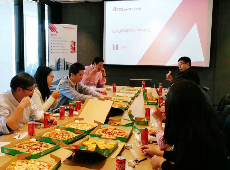 2019年4月16日艾克森一行人與AECOM專家、設計團隊共同分享了艾克森——隨需應變的換熱方案,包括艾克森產品在新廣州電視塔,武漢綠地中心,上海洲際酒店,世博中國館,梅賽德斯-奔馳文化中心,上海世貿深坑酒店,上海SOHO凌空廣場、成都來福士、蜀都中心區域能源站等制冷領域的產品應用,共同分享了ASME和AHRI在項目中的應用經驗和特點,通過交流專家們對艾克森的生產制造設備和全系列換熱產品及其設計理念表示認可,對艾克森產品獲得板式換熱器節能認證給予好評。會后被邀請一行人共聚午餐,整個交流活動在愉快的氣氛中結束,專家團隊表達了希望通過進一步的參觀工廠,實地了解工藝和產品的性能測試等生產細節,以及雙方更多合作的可能性。