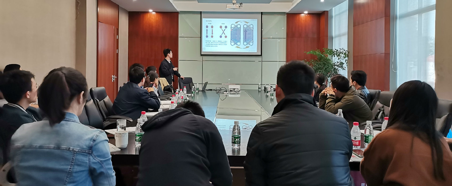 2019年10月31日,上海同濟院建筑設計研究院的暖通設計專家團在曾主任的帶領下來到了艾克森太倉機組工廠,隨行的年輕小伙伴們——設計師還參加了艾克森的換熱實踐課,課后大家一起參觀了艾克森太倉換熱機組的整體生產工藝,了解了換熱機組從設計到加工制造和出廠測試的全流程和質量控制點。艾克森上海團隊全程參與了本次活動,技術人員通過全方位的案例視頻、產品動畫、PPT和樣本等多種方式,系統的介紹了艾克森換熱設備產品的性能和產品應用特點,分享了艾克森換熱機組在不同行業的經典應用案例,還針對換熱機組在項目設計應用中遇到的難點問題與設計師團隊進行了深入的溝通和交流。